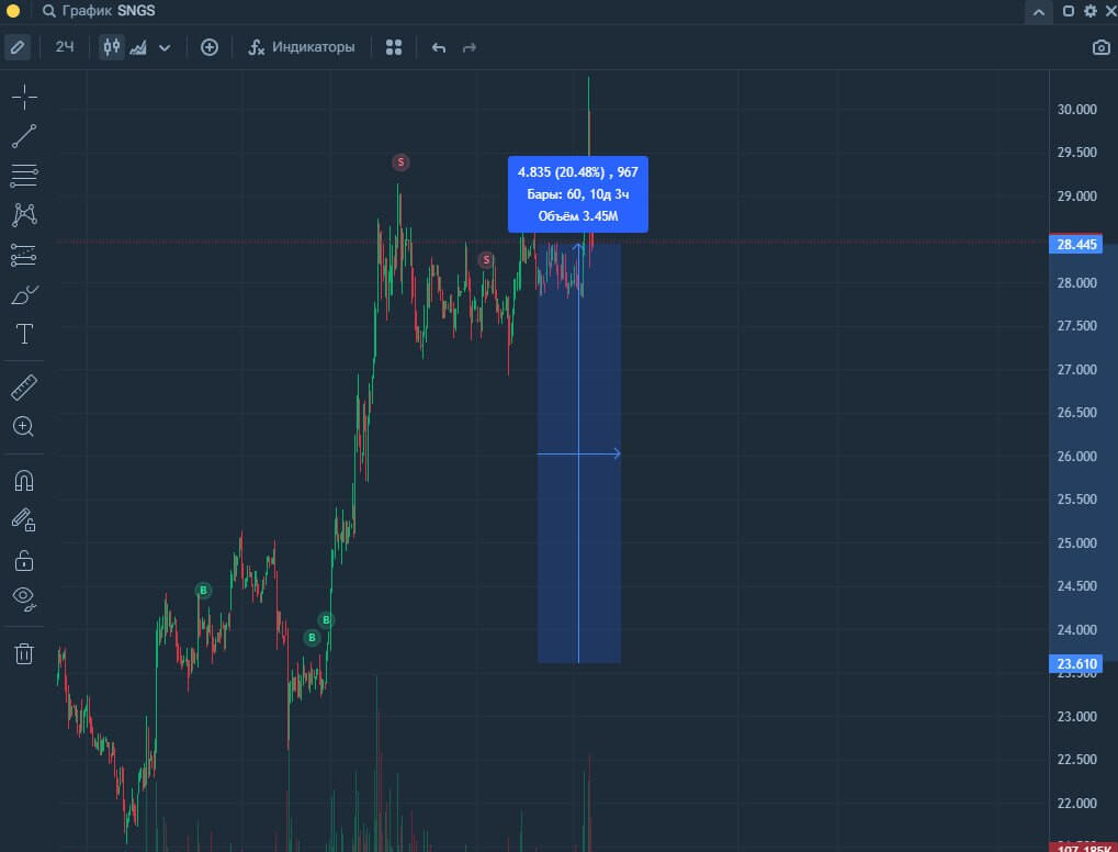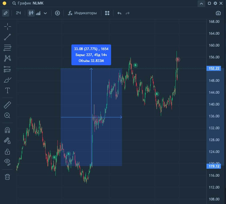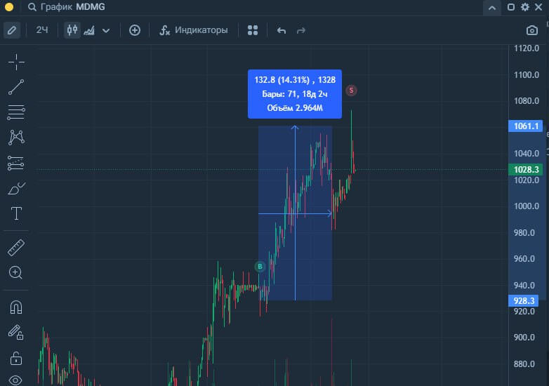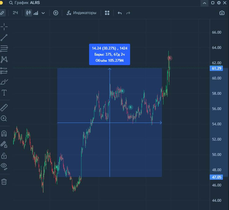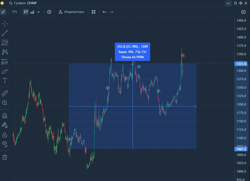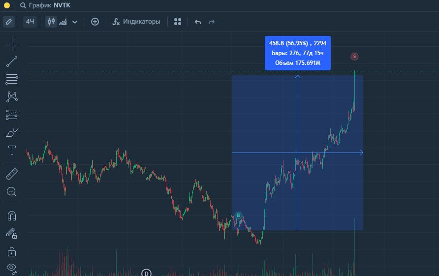Грамотное сочетание графического и технического анализа активов для поиска необходимой точки входа и понимания конкретной точки выхода.