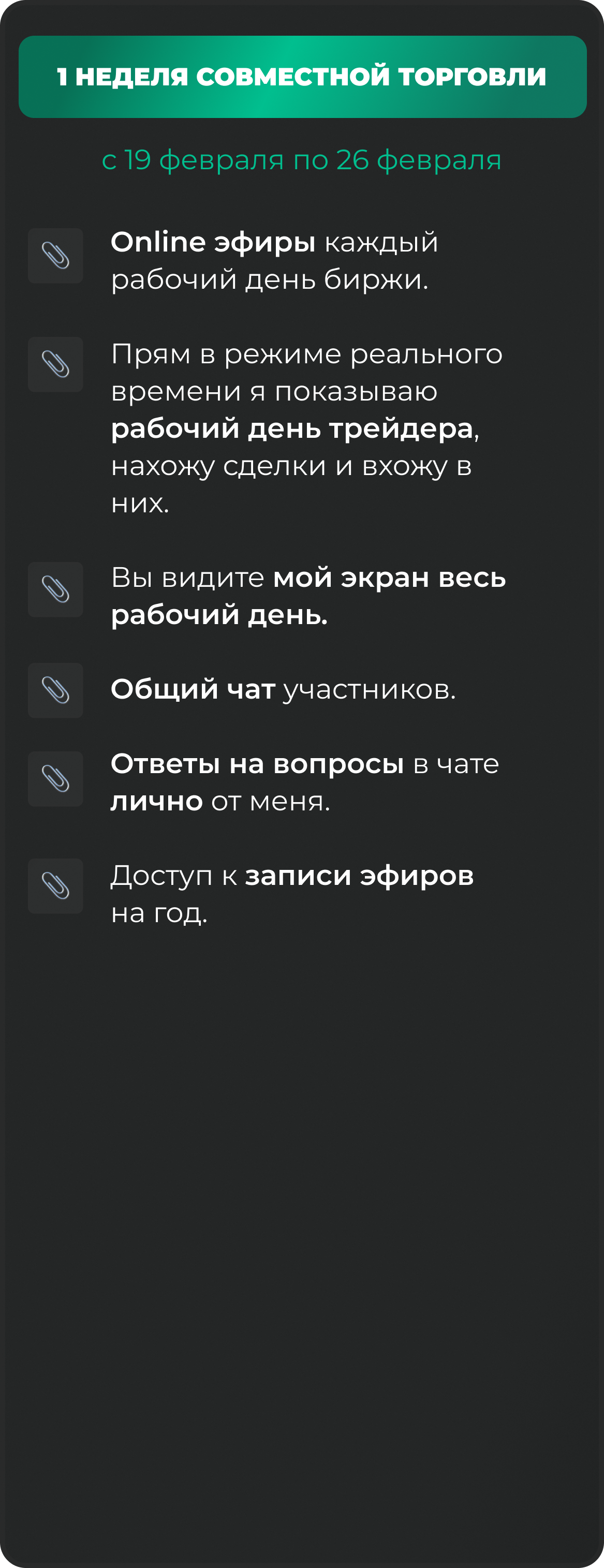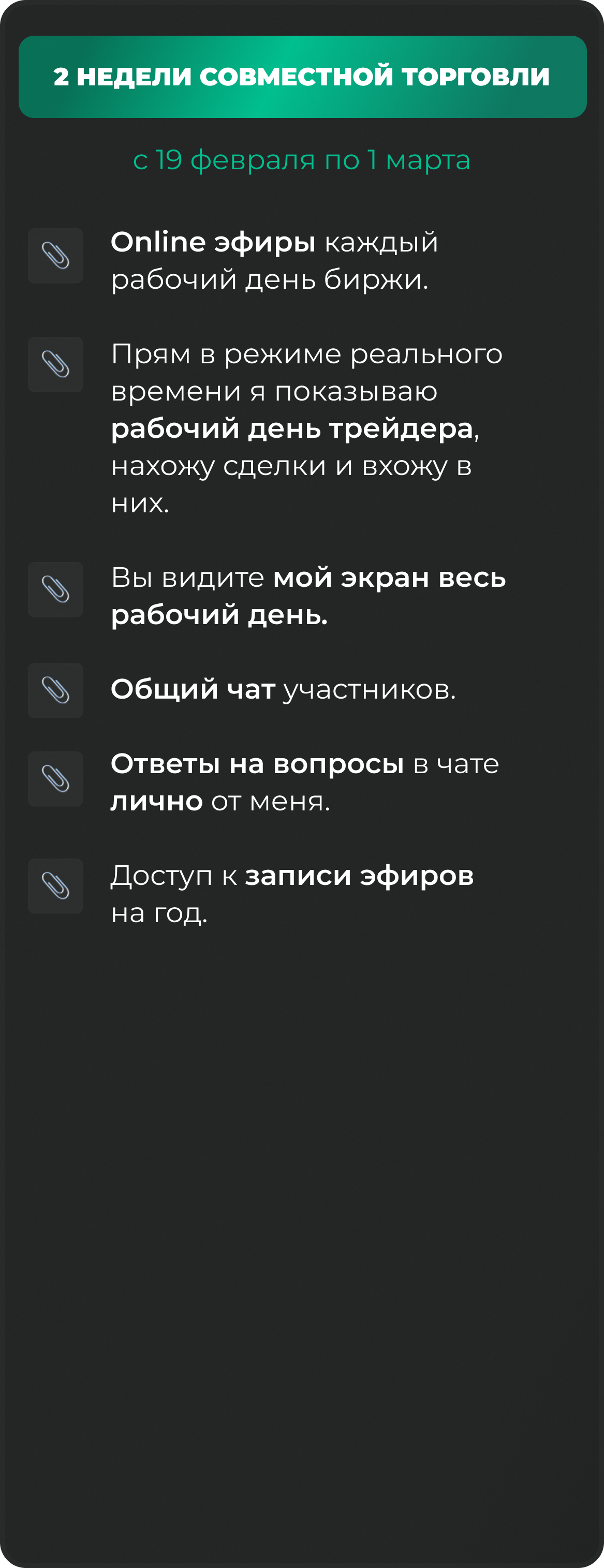 Провел пять двухнедельных марафонов совместной торговли с подписчиками в режиме реального времени с результатами до 13%